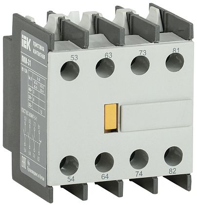 Приставка контактная серии ПК-03-02 для контакторов КМ-103 DEKraft; кол-во контактов - 3НО+1НЗ; ном.ток – 10 А; ном.напряжение – до 690 В; установка – с лицевой стороны; степень защиты – IP20. Приставки контактные предназначены для увеличения количества вспомогательных контактов контактора. Контактные приставки механически соединяются с контакторами и фиксируются при помощи защелки. Приставка подходит для использования с контакторами других производителей.