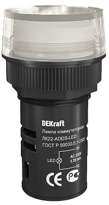 Лампа коммутаторная ADDS ?22 мм Цвет:БЕЛЫЙ LED 220В ЛK-22 DEKraft (25001DEK)