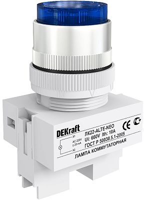Лампа коммутаторная ALTE ?22 мм Цвет:СИНИЙ неон 220В ЛK-22 DEKr DEKraft (25010DEK)