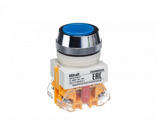 Выключатель кнопочный ABLF ?30 мм Цвет:СИНИЙ 220В ВK-30 DEKraft (25046DEK)