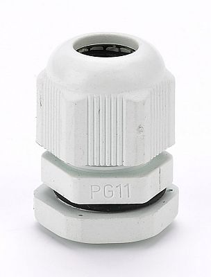Кабельный ввод серии КВ-101 DEKraft; типа PG 11 диаметр кабеля – от 5 до 11 мм; цвет – белый; материал – пластик; степень защиты - IP54; количество в упаковке – 20 шт. Кабельный ввод состоит из фиксирующей гайки, корпуса, уплотнения из нейлона, а также из уплотнителя и прокладки из неопрена. Кабельные вводы имеют химическую стойкость к соленой воде, слабым кислотам, маслам, нефтепродуктам и основным растворителям. Конструкция кабельных вводов позволяет пропускать кабель без его демонтажа.