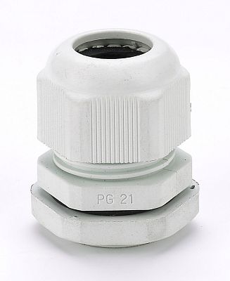 Кабельный ввод серии КВ-101 DEKraft; типа PG 21 диаметр кабеля – от 13 до 18 мм; цвет – белый; материал – пластик; степень защиты - IP54; количество в упаковке – 20 шт. Кабельный ввод состоит из фиксирующей гайки, корпуса, уплотнения из нейлона, а также из уплотнителя и прокладки из неопрена. Кабельные вводы имеют химическую стойкость к соленой воде, слабым кислотам, маслам, нефтепродуктам и основным растворителям. Конструкция кабельных вводов позволяет пропускать кабель без его демонтажа.