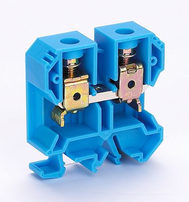 Зажим наборный серии ЗН-101 DEKraft ; номинальный ток - 125 А; сечение проводов от 3 до 35 кв.мм; цвет – синий; материал корпуса - полиамид; материал клемм и винтов – латунь; монтаж - защелкиванием на DIN-рейку; количество в упаковке – 20 шт. Клемма выполнена таким образом, что обеспечивает двойной обжим проводника. Это обеспечивается в том числе и за счет насечек на клеммах. Зажимы наборные синего цвета применяются для присоединения нулевого рабочего проводника.