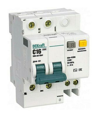 Автоматический выключатели дифференциального тока АВДТ 2Р 16А 300мА тип AC х-ка C ДИФ-101 4,5кА DEKraft (15036DEK)