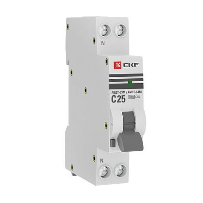 Автоматический выключатели дифференциального тока АВДТ 1Р+N 25А 10мА тип AC х-ка С ДИФ-103 6кА DEKraft