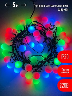 Гирлянды ENIN - 18BM ЭРА Гирлянда LED Нить Шарики d18мм, 5 м мультиколор, 220V,