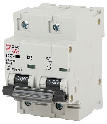 Автоматический выключатель ЭРА PRO ВА47-100 2P 16А 10кА кривая С, NO-902-272
