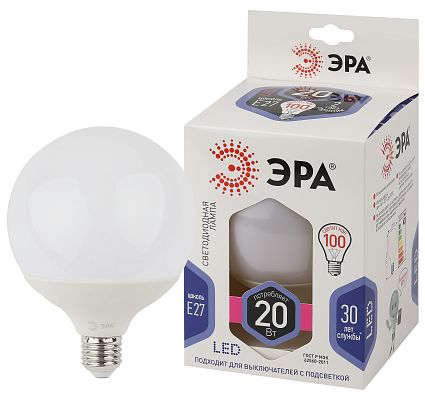 К светотехнике на любом объекте, будь то жилое помещение или коммерческая площадка, предъявляют высокие требования. Необходимо не только продумать конфигурацию всех приборов, безопасную схему подключения, суммарную мощность и нагрузку на сеть, но и учесть требования дизайна, поскольку эстетике сегодня уделяется большое внимание. Лампа светодиодная ЭРА STD LED G120-20W-6000K-E27 шар холодный дневной свет (Б0049082) — современное решение, в котором учтены все требования. За надежность отвечают материалы с большим запасом прочности. Все элементы конструкции без проблем выдерживают интенсивную эксплуатацию. Такой вдумчивый подход к деталям является визитной карточкой бренда ЭРА.