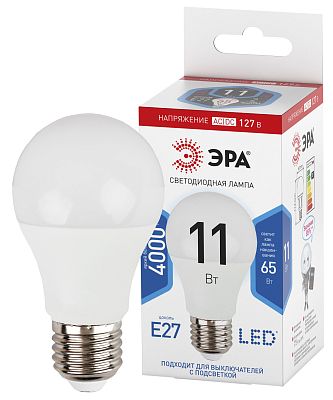 Лампа светодиодная ЭРА STD LED A60-11W-127V-840-E27 груша нейтральный белый свет (Б0049100)