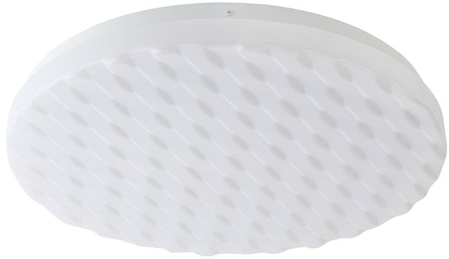 Неповторимый рельефный дизайн рассеивателя идеально сочетается с круглым плоским корпусом. За счет этого LED люстра освежит пространство детской, спальни или прихожей.<br />