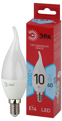 Лампа светодиодная ЭРА RED LINE LED BXS-10W-840-E14 R свеча на ветру нейтральный белый свет