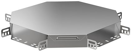 Крестовина плавная предназначена для организации X-образного ответвления кабельной трассы. Крышка аксессуара в комплект не входит.