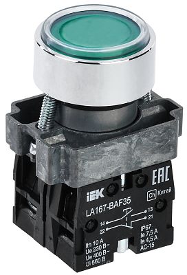 Кнопка LA167-BAF35 d=22мм 1з+1р зеленая IEK (BBT20-BAF35-3-22-67-K06)