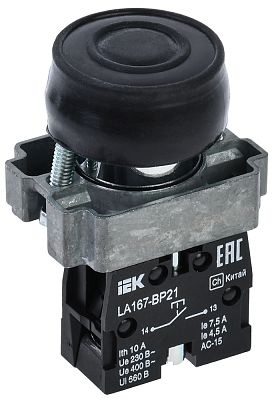 Кнопка LA167-BP21 d=22мм 1з черная IEK (BBT20-BP21-1-22-67-K02)
