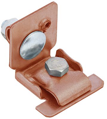 Держатель проводника круглого универсальный 6 – 10 мм фальц 0,7 – 8 мм товарного знака IEK используется для крепления круглых проводников на стоячем плоском фальцевом шве фальцевой кровли или на других металлических конструкциях.