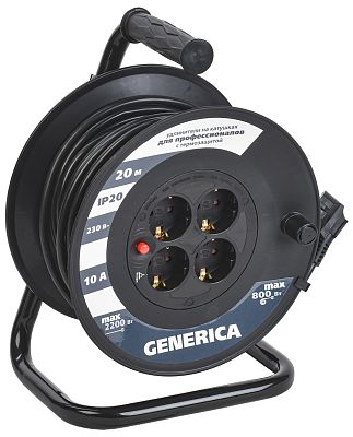 При подборе розеток, выключателей и других элементов для работы с электроэнергией учитывают не только электротехнические параметры, но и эстетику. Удлинитель на катушке УК20 с термозащитой 4 места 2P+PE/20м 3х1,0мм2 GENERICA IEK (WKP10-10-04-20-G) — одна из лучших моделей в своем классе по обоим критериям. Производитель GENERICA сделал ставку на простую надежную конструкцию и современные материалы, которые обладают высокой устойчивостью к износу. Продукция прошла строгую проверку на безопасность и рассчитана на многолетнюю эксплуатацию в интенсивном режиме. Как официальный дистрибьютор мы готовы поставить любое количество товаров в кратчайшие сроки.
