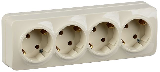 При подборе розеток, выключателей и других элементов для работы с электроэнергией учитывают не только электротехнические параметры, но и эстетику. Розетка четырехместная для открытой установки РС24-3-ХК с заземлением 16А GLORY кремовый IEK (ERH41-K33-16) — одна из лучших моделей в своем классе по обоим критериям. Производитель IEK сделал ставку на простую надежную конструкцию и современные материалы, которые обладают высокой устойчивостью к износу. Продукция прошла строгую проверку на безопасность и рассчитана на многолетнюю эксплуатацию в интенсивном режиме. Как официальный дистрибьютор мы готовы поставить любое количество товаров в кратчайшие сроки.