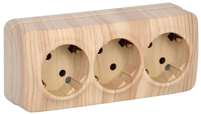 При подборе розеток, выключателей и других элементов для работы с электроэнергией учитывают не только электротехнические параметры, но и эстетику. Розетка трехместная для открытой установки РС23-3-ХС с заземлением 16А GLORY сосна IEK (ERH31-K34-16) — одна из лучших моделей в своем классе по обоим критериям. Производитель IEK сделал ставку на простую надежную конструкцию и современные материалы, которые обладают высокой устойчивостью к износу. Продукция прошла строгую проверку на безопасность и рассчитана на многолетнюю эксплуатацию в интенсивном режиме. Как официальный дистрибьютор мы готовы поставить любое количество товаров в кратчайшие сроки.