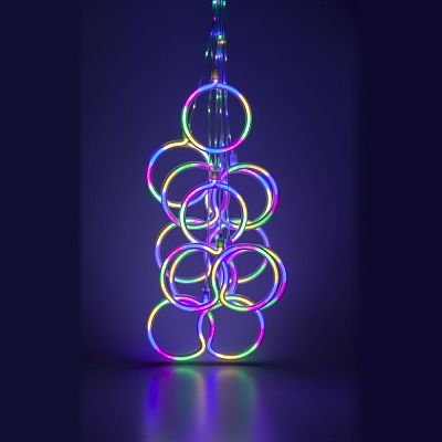 К светотехнике на любом объекте, будь то жилое помещение или коммерческая площадка, предъявляют высокие требования. Необходимо не только продумать конфигурацию всех приборов, безопасную схему подключения, суммарную мощность и нагрузку на сеть, но и учесть требования дизайна, поскольку эстетике сегодня уделяется большое внимание. Светодиодная новогодняя гирлянда ЭРА ЕGNIG - RI занавес Неоновые кольца 8 режимов 2,4*0,65 м мультиколор IP20 (Б0051878) — современное решение, в котором учтены все требования. За надежность отвечают материалы с большим запасом прочности. Все элементы конструкции без проблем выдерживают интенсивную эксплуатацию. Такой вдумчивый подход к деталям является визитной карточкой бренда ЭРА.