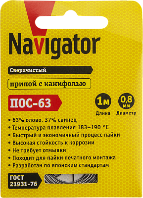 Залогом качественного электромонтажа является правильный выбор расходников и инструмента. Припой Navigator 93 092 NEM-Pos03-63K-0.8-S1 (ПОС-63, спираль, 0.8 мм, 1 м) (93092) — проверенное решение, с которым работа пойдет гораздо быстрее, а результат будет соответствовать строгим отраслевым стандартам и другим нормативным требованиям. Позиция 93092 пользуется спросом и у профессионалов, обслуживающих сложные и ответственные объекты, и у обычных пользователей, которые сталкиваются с аналогичными задачами в быту. Работать с товарами Navigator действительно просто, а их быструю доставку мы берем на себя.