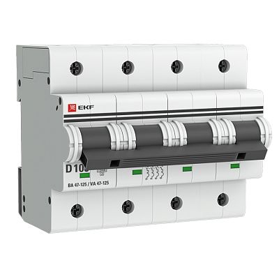 Основное назначение автоматического выключателя — это защита от возможной перегрузки и короткого замыкания. Покупка Автоматический выключатель 4P 100А (D) 15кА ВА 47-125 EKF PROxima (mcb47125-4-100D) обеспечит надежную защиту электрооборудования от поломок из-за перегрузок и скачков напряжения. Просим обращать внимание на характеристики EKF.
