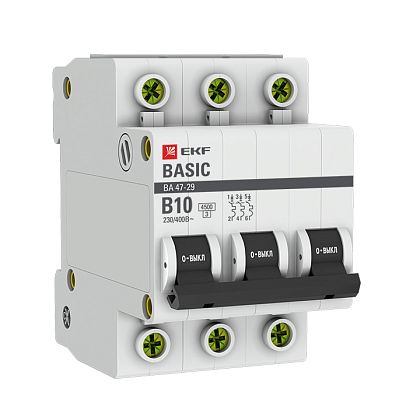 Основное назначение автоматического выключателя — это защита от возможной перегрузки и короткого замыкания. Покупка Автоматический выключатель 3P 10А (B) 4,5кА ВА 47-29 EKF Basic (mcb4729-3-10-B) обеспечит надежную защиту электрооборудования от поломок из-за перегрузок и скачков напряжения. Просим обращать внимание на характеристики EKF.