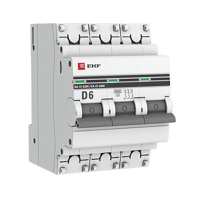 Основное назначение автоматического выключателя — это защита от возможной перегрузки и короткого замыкания. Покупка Автоматический выключатель 3P 6А (D) 6кА ВА 47-63M без теплового расцепителя EKF PROxima (mcb4763m-6-3-6D-pro) обеспечит надежную защиту электрооборудования от поломок из-за перегрузок и скачков напряжения. Просим обращать внимание на характеристики EKF.