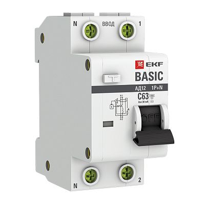 Автоматический выключатель дифференциального тока 1P+N 63А 30мА тип АС х-ка C эл. 4,5кА АД-12 EKF Basic (DA12-63-30-bas) — современное решение для контроля нагрузки в сети, предотвращения перегрузок и других аварийных ситуаций, способных повлиять на подключенных потребителей. Такое низковольтное оборудование рассчитано на работу при номинальном напряжении до 1000 вольт. Производитель EKF давно представлен на электротехническом рынке, его устройства функционируют на объектах самого разного назначения, их рекомендуют профессиональные электрики благодаря высокой надежности, безотказности и безопасности. Подтвердите заказ на любое количество артикула DA12-63-30-bas, и мы оперативно отправим его по России.