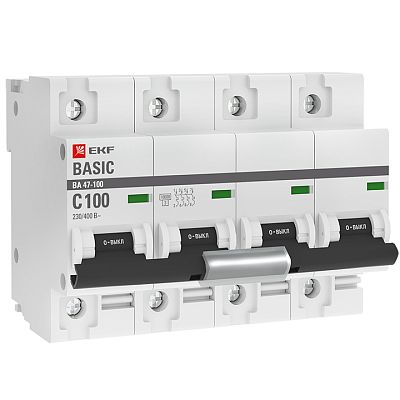 Основное назначение автоматического выключателя — это защита от возможной перегрузки и короткого замыкания. Покупка Автоматический выключатель 4P 100А (C) 10kA ВА 47-100 EKF Basic (mcb47100-4-100C-bas) обеспечит надежную защиту электрооборудования от поломок из-за перегрузок и скачков напряжения. Просим обращать внимание на характеристики EKF.