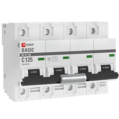 Основное назначение автоматического выключателя — это защита от возможной перегрузки и короткого замыкания. Покупка Автоматический выключатель 4P 125А (C) 10kA ВА 47-100 EKF Basic (mcb47100-4-125C-bas) обеспечит надежную защиту электрооборудования от поломок из-за перегрузок и скачков напряжения. Просим обращать внимание на характеристики EKF.