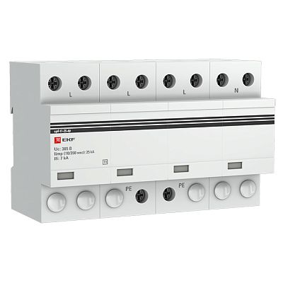Устройство защиты от импульсных перенапряжений Тип 1 Iimp 25kA (10/350μs) 4P EKF (spd-t1-25-4p) — современное решение для контроля нагрузки в сети, предотвращения перегрузок и других аварийных ситуаций, способных повлиять на подключенных потребителей. Такое низковольтное оборудование рассчитано на работу при номинальном напряжении до 1000 вольт. Производитель EKF давно представлен на электротехническом рынке, его устройства функционируют на объектах самого разного назначения, их рекомендуют профессиональные электрики благодаря высокой надежности, безотказности и безопасности. Подтвердите заказ на любое количество артикула spd-t1-25-4p, и мы оперативно отправим его по России.