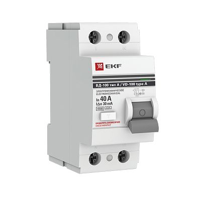 Устройство Защитного Отключения ВД-100 2P 40А/ 30мА (эл-мех, тип А) EKF PROxima (elcb-2-40-30-em-a-pro) — современное решение для контроля нагрузки в сети, предотвращения перегрузок и других аварийных ситуаций, способных повлиять на подключенных потребителей. Такое низковольтное оборудование рассчитано на работу при номинальном напряжении до 1000 вольт. Производитель EKF давно представлен на электротехническом рынке, его устройства функционируют на объектах самого разного назначения, их рекомендуют профессиональные электрики благодаря высокой надежности, безотказности и безопасности. Подтвердите заказ на любое количество артикула elcb-2-40-30-em-a-pro, и мы оперативно отправим его по России.