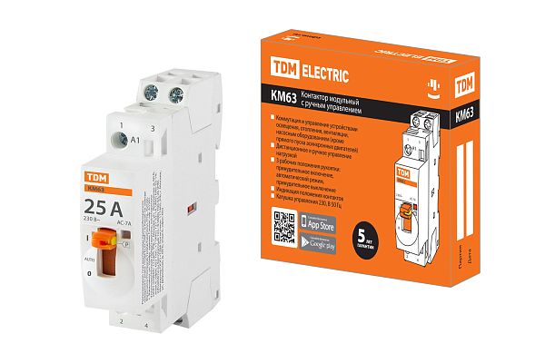 Контактор модульный с ручным управлением КМ63/2-25 2НО 230В АС TDM (SQ0213-0100) — современное решение для контроля нагрузки в сети, предотвращения перегрузок и других аварийных ситуаций, способных повлиять на подключенных потребителей. Такое низковольтное оборудование рассчитано на работу при номинальном напряжении до 1000 вольт. Производитель TDM давно представлен на электротехническом рынке, его устройства функционируют на объектах самого разного назначения, их рекомендуют профессиональные электрики благодаря высокой надежности, безотказности и безопасности. Подтвердите заказ на любое количество артикула SQ0213-0100, и мы оперативно отправим его по России.