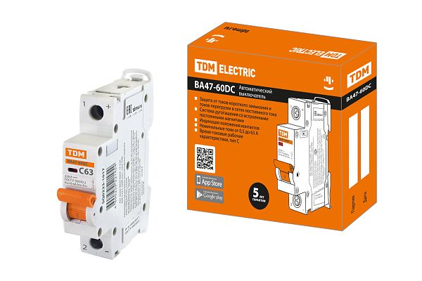 Основное назначение автоматического выключателя — это защита от возможной перегрузки и короткого замыкания. Покупка Выключатель автоматический ВА47-60DC 1P 63А 6кА х-ка С TDM (SQ0223-1017) обеспечит надежную защиту электрооборудования от поломок из-за перегрузок и скачков напряжения. Просим обращать внимание на характеристики TDM.