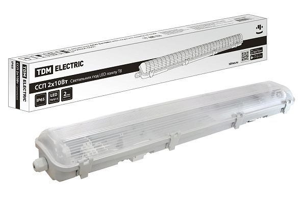 К светотехнике на любом объекте, будь то жилое помещение или коммерческая площадка, предъявляют высокие требования. Необходимо не только продумать конфигурацию всех приборов, безопасную схему подключения, суммарную мощность и нагрузку на сеть, но и учесть требования дизайна, поскольку эстетике сегодня уделяется большое внимание. Светильник ССП 2х10Вт IP65 под LED лампу T8 TDM (SQ0304-0301) — современное решение, в котором учтены все требования. За надежность отвечают материалы с большим запасом прочности. Все элементы конструкции без проблем выдерживают интенсивную эксплуатацию. Такой вдумчивый подход к деталям является визитной карточкой бренда TDM.