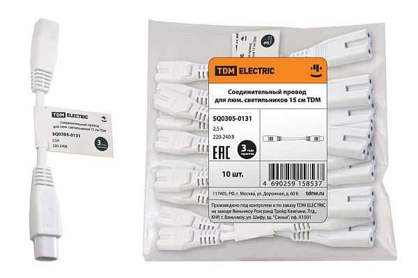 К светотехнике на любом объекте, будь то жилое помещение или коммерческая площадка, предъявляют высокие требования. Необходимо не только продумать конфигурацию всех приборов, безопасную схему подключения, суммарную мощность и нагрузку на сеть, но и учесть требования дизайна, поскольку эстетике сегодня уделяется большое внимание. Соединительный провод для люм. светильников 15 см. TDM (SQ0305-0131) — современное решение, в котором учтены все требования. За надежность отвечают материалы с большим запасом прочности. Все элементы конструкции без проблем выдерживают интенсивную эксплуатацию. Такой вдумчивый подход к деталям является визитной карточкой бренда TDM.