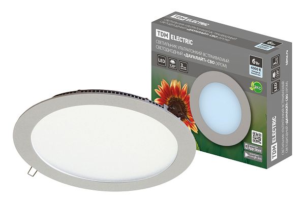 К светотехнике на любом объекте, будь то жилое помещение или коммерческая площадка, предъявляют высокие требования. Необходимо не только продумать конфигурацию всех приборов, безопасную схему подключения, суммарную мощность и нагрузку на сеть, но и учесть требования дизайна, поскольку эстетике сегодня уделяется большое внимание. Светильник ультратонкий встраиваемый светодиодный "Даунлайт" СВО (хром) 6 Вт 4000К TDM (SQ0329-0102) — современное решение, в котором учтены все требования. За надежность отвечают материалы с большим запасом прочности. Все элементы конструкции без проблем выдерживают интенсивную эксплуатацию. Такой вдумчивый подход к деталям является визитной карточкой бренда TDM.