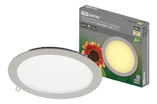 К светотехнике на любом объекте, будь то жилое помещение или коммерческая площадка, предъявляют высокие требования. Необходимо не только продумать конфигурацию всех приборов, безопасную схему подключения, суммарную мощность и нагрузку на сеть, но и учесть требования дизайна, поскольку эстетике сегодня уделяется большое внимание. Светильник ультратонкий встраиваемый светодиодный "Даунлайт" СВО (хром) 24 Вт 3000К TDM (SQ0329-0103) — современное решение, в котором учтены все требования. За надежность отвечают материалы с большим запасом прочности. Все элементы конструкции без проблем выдерживают интенсивную эксплуатацию. Такой вдумчивый подход к деталям является визитной карточкой бренда TDM.
