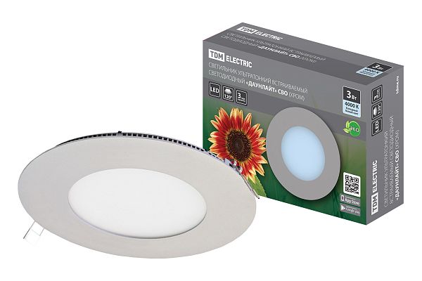 К светотехнике на любом объекте, будь то жилое помещение или коммерческая площадка, предъявляют высокие требования. Необходимо не только продумать конфигурацию всех приборов, безопасную схему подключения, суммарную мощность и нагрузку на сеть, но и учесть требования дизайна, поскольку эстетике сегодня уделяется большое внимание. Светильник ультратонкий встраиваемый светодиодный "Даунлайт" СВО (хром) 3 Вт 4000К TDM (SQ0329-0105) — современное решение, в котором учтены все требования. За надежность отвечают материалы с большим запасом прочности. Все элементы конструкции без проблем выдерживают интенсивную эксплуатацию. Такой вдумчивый подход к деталям является визитной карточкой бренда TDM.