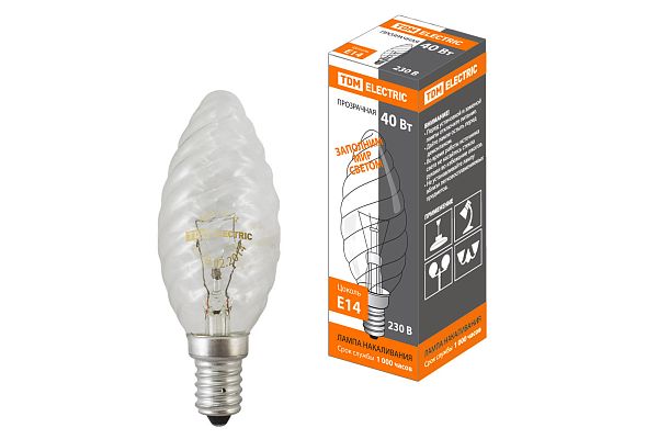 К светотехнике на любом объекте, будь то жилое помещение или коммерческая площадка, предъявляют высокие требования. Необходимо не только продумать конфигурацию всех приборов, безопасную схему подключения, суммарную мощность и нагрузку на сеть, но и учесть требования дизайна, поскольку эстетике сегодня уделяется большое внимание. Лампа накаливания "Витая свеча" прозрачная 40 Вт-230 В-Е14 TDM (SQ0332-0013) — современное решение, в котором учтены все требования. За надежность отвечают материалы с большим запасом прочности. Все элементы конструкции без проблем выдерживают интенсивную эксплуатацию. Такой вдумчивый подход к деталям является визитной карточкой бренда TDM.