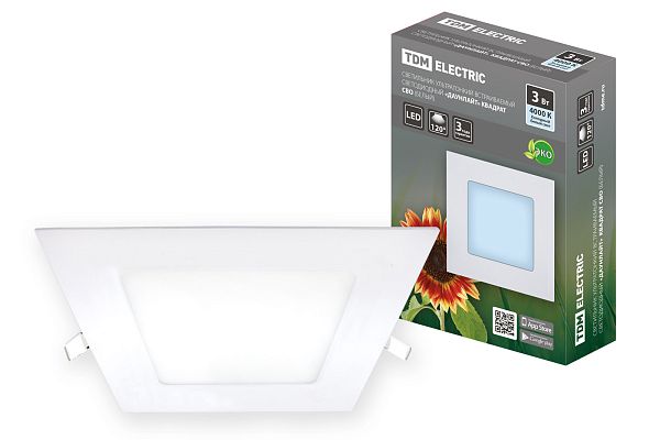 К светотехнике на любом объекте, будь то жилое помещение или коммерческая площадка, предъявляют высокие требования. Необходимо не только продумать конфигурацию всех приборов, безопасную схему подключения, суммарную мощность и нагрузку на сеть, но и учесть требования дизайна, поскольку эстетике сегодня уделяется большое внимание. Светильник ультратонкий встраиваемый светодиодный "Даунлайт" квадрат СВО (белый) 3 Вт 4000К TDM (SQ0329-0116) — современное решение, в котором учтены все требования. За надежность отвечают материалы с большим запасом прочности. Все элементы конструкции без проблем выдерживают интенсивную эксплуатацию. Такой вдумчивый подход к деталям является визитной карточкой бренда TDM.