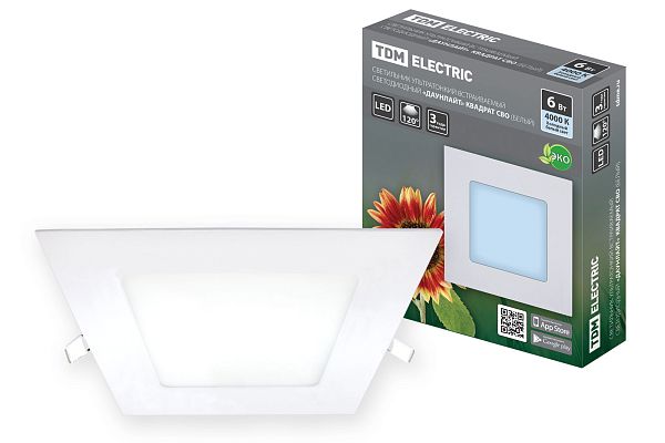 К светотехнике на любом объекте, будь то жилое помещение или коммерческая площадка, предъявляют высокие требования. Необходимо не только продумать конфигурацию всех приборов, безопасную схему подключения, суммарную мощность и нагрузку на сеть, но и учесть требования дизайна, поскольку эстетике сегодня уделяется большое внимание. Светильник ультратонкий встраиваемый светодиодный "Даунлайт" квадрат СВО (белый) 6 Вт 4000К TDM (SQ0329-0120) — современное решение, в котором учтены все требования. За надежность отвечают материалы с большим запасом прочности. Все элементы конструкции без проблем выдерживают интенсивную эксплуатацию. Такой вдумчивый подход к деталям является визитной карточкой бренда TDM.