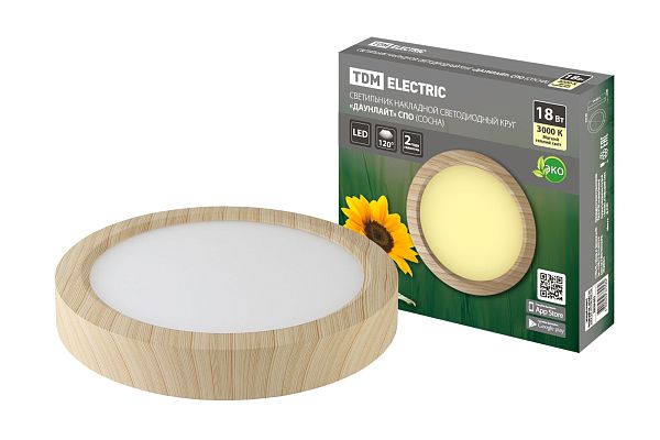 К светотехнике на любом объекте, будь то жилое помещение или коммерческая площадка, предъявляют высокие требования. Необходимо не только продумать конфигурацию всех приборов, безопасную схему подключения, суммарную мощность и нагрузку на сеть, но и учесть требования дизайна, поскольку эстетике сегодня уделяется большое внимание. Светильник накладной светодиодный круг "Даунлайт" СПО (сосна) 18 Вт 225*32 мм 3000К TDM (SQ0329-0415) — современное решение, в котором учтены все требования. За надежность отвечают материалы с большим запасом прочности. Все элементы конструкции без проблем выдерживают интенсивную эксплуатацию. Такой вдумчивый подход к деталям является визитной карточкой бренда TDM.