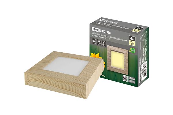 К светотехнике на любом объекте, будь то жилое помещение или коммерческая площадка, предъявляют высокие требования. Необходимо не только продумать конфигурацию всех приборов, безопасную схему подключения, суммарную мощность и нагрузку на сеть, но и учесть требования дизайна, поскольку эстетике сегодня уделяется большое внимание. Светильник накладной светодиодный квадрат "Даунлайт" СПО (сосна) 6 Вт 120*120*32 мм 3000К TDM (SQ0329-0418) — современное решение, в котором учтены все требования. За надежность отвечают материалы с большим запасом прочности. Все элементы конструкции без проблем выдерживают интенсивную эксплуатацию. Такой вдумчивый подход к деталям является визитной карточкой бренда TDM.