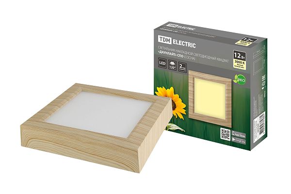 К светотехнике на любом объекте, будь то жилое помещение или коммерческая площадка, предъявляют высокие требования. Необходимо не только продумать конфигурацию всех приборов, безопасную схему подключения, суммарную мощность и нагрузку на сеть, но и учесть требования дизайна, поскольку эстетике сегодня уделяется большое внимание. Светильник накладной светодиодный квадрат "Даунлайт" СПО (сосна) 12 Вт 170*170*32 мм 3000К TDM (SQ0329-0420) — современное решение, в котором учтены все требования. За надежность отвечают материалы с большим запасом прочности. Все элементы конструкции без проблем выдерживают интенсивную эксплуатацию. Такой вдумчивый подход к деталям является визитной карточкой бренда TDM.
