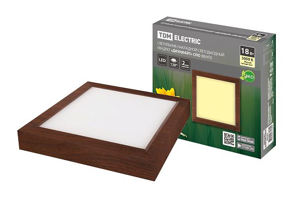 К светотехнике на любом объекте, будь то жилое помещение или коммерческая площадка, предъявляют высокие требования. Необходимо не только продумать конфигурацию всех приборов, безопасную схему подключения, суммарную мощность и нагрузку на сеть, но и учесть требования дизайна, поскольку эстетике сегодня уделяется большое внимание. Светильник накладной светодиодный квадрат "Даунлайт" СПО (венге) 18 Вт 225*225*32 мм 3000К TDM (SQ0329-0422) — современное решение, в котором учтены все требования. За надежность отвечают материалы с большим запасом прочности. Все элементы конструкции без проблем выдерживают интенсивную эксплуатацию. Такой вдумчивый подход к деталям является визитной карточкой бренда TDM.