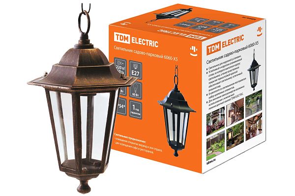 К светотехнике на любом объекте, будь то жилое помещение или коммерческая площадка, предъявляют высокие требования. Необходимо не только продумать конфигурацию всех приборов, безопасную схему подключения, суммарную мощность и нагрузку на сеть, но и учесть требования дизайна, поскольку эстетике сегодня уделяется большое внимание. Светильник 6060-15 садово-парковый шестигранник, 60Вт, подвес, бронза TDM (SQ0330-0015) — современное решение, в котором учтены все требования. За надежность отвечают материалы с большим запасом прочности. Все элементы конструкции без проблем выдерживают интенсивную эксплуатацию. Такой вдумчивый подход к деталям является визитной карточкой бренда TDM.