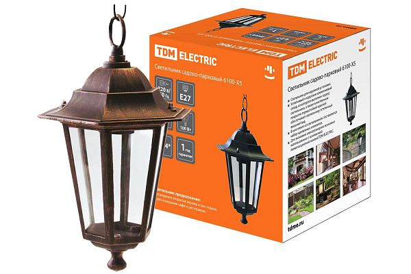 К светотехнике на любом объекте, будь то жилое помещение или коммерческая площадка, предъявляют высокие требования. Необходимо не только продумать конфигурацию всех приборов, безопасную схему подключения, суммарную мощность и нагрузку на сеть, но и учесть требования дизайна, поскольку эстетике сегодня уделяется большое внимание. Светильник 6100-15 садово-парковый шестигранник, 100Вт, подвес, бронза TDM (SQ0330-0020) — современное решение, в котором учтены все требования. За надежность отвечают материалы с большим запасом прочности. Все элементы конструкции без проблем выдерживают интенсивную эксплуатацию. Такой вдумчивый подход к деталям является визитной карточкой бренда TDM.