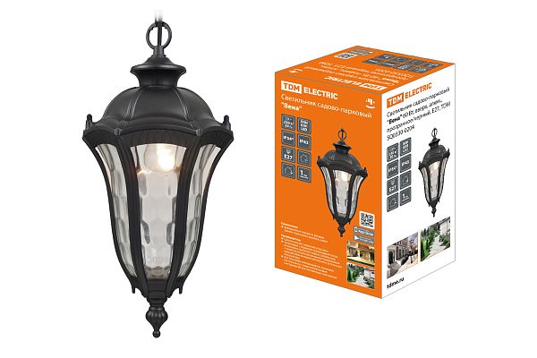 К светотехнике на любом объекте, будь то жилое помещение или коммерческая площадка, предъявляют высокие требования. Необходимо не только продумать конфигурацию всех приборов, безопасную схему подключения, суммарную мощность и нагрузку на сеть, но и учесть требования дизайна, поскольку эстетике сегодня уделяется большое внимание. Светильник садово-парковый "Вена" 60 Вт, подвес, алюм., прозрачное/черный Е27, TDM (SQ0330-0205) — современное решение, в котором учтены все требования. За надежность отвечают материалы с большим запасом прочности. Все элементы конструкции без проблем выдерживают интенсивную эксплуатацию. Такой вдумчивый подход к деталям является визитной карточкой бренда TDM.
