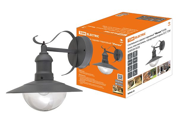 К светотехнике на любом объекте, будь то жилое помещение или коммерческая площадка, предъявляют высокие требования. Необходимо не только продумать конфигурацию всех приборов, безопасную схему подключения, суммарную мощность и нагрузку на сеть, но и учесть требования дизайна, поскольку эстетике сегодня уделяется большое внимание. Светильник садово-парковый "Милан" 60 Вт, вниз, пластик/алюм., прозрачное/серый, Е27, TDM (SQ0330-0235) — современное решение, в котором учтены все требования. За надежность отвечают материалы с большим запасом прочности. Все элементы конструкции без проблем выдерживают интенсивную эксплуатацию. Такой вдумчивый подход к деталям является визитной карточкой бренда TDM.